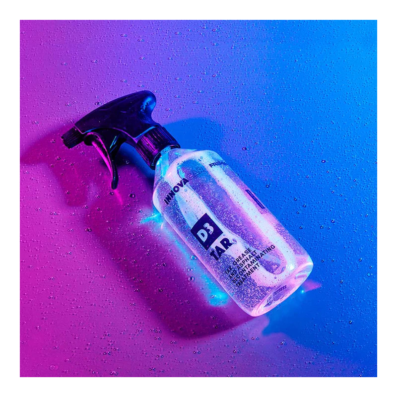 D3 TAR este degresantul și decontaminantul profesional pe bază de apă, special dezvoltat pentru eliminarea eficientă a petelor persistente de bitum, asfalt, rășină arborilor și urmelor de adezivi de pe caroseria și geamurile auto. Cu putere maximă de curățare (5/5) și rating de 5/5 pentru decontaminarea bitumului, acest produs revoluționar înlocuiește soluțiile clasice pe bază de solvenți petrolieri, oferind o alternativă mai sigură și mai eficientă pentru decontaminarea completă a vehiculului. Formula sa unică pe bază de apă asigură evaporare lentă pentru acțiune îndelungată, fiind totodată complet sigur pentru toate suprafețele și protecțiile nanotehnologice.